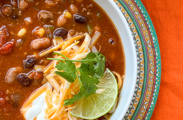 - Heat the canola oil in your favourite large soup pot over high heat. Add ground beef and start to brown.